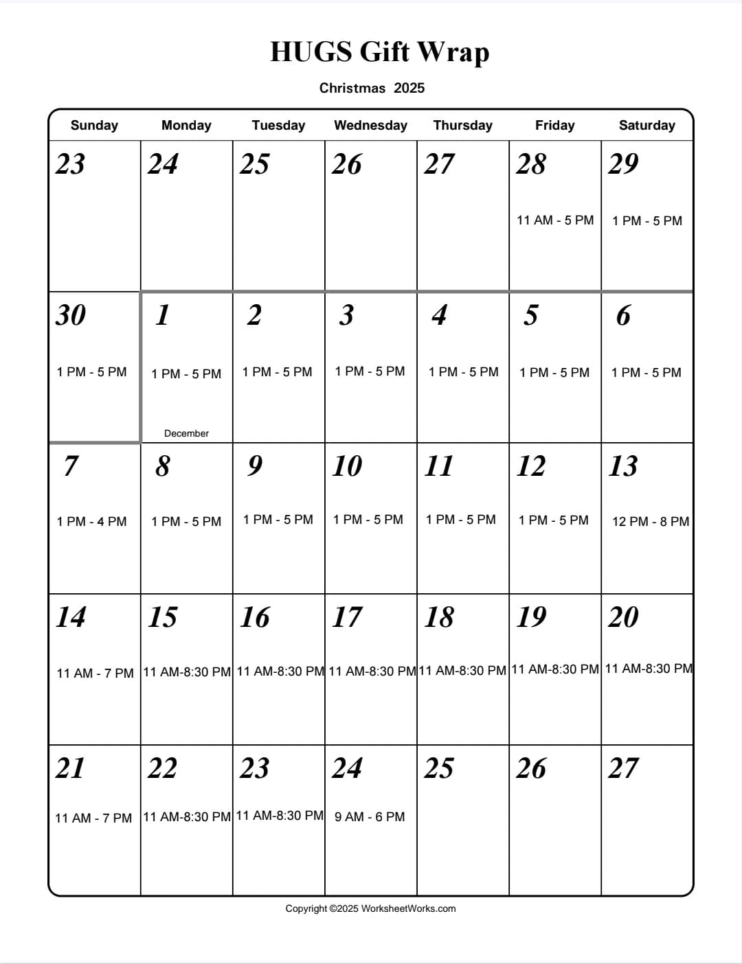 Friday November 28th, 2025 11:00 AM until Wednesday December 24th, 2025 06:30 PM Location: Westroads Mall, Omaha